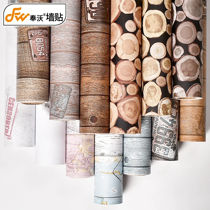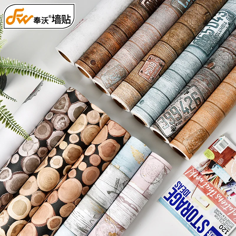 ORIGINAL Wallpaper self-adhesive imitation wood grain industrial wind wallpaper living room background wall