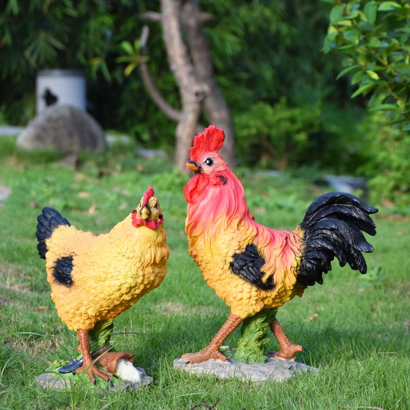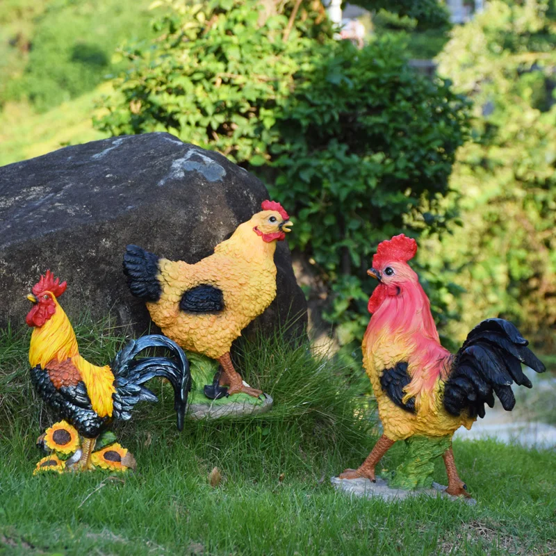 Outdoor Home Garden Big Cock Standing In Sunflower Resin Crafts Decoration Park Courtyard Ornament