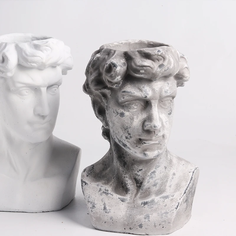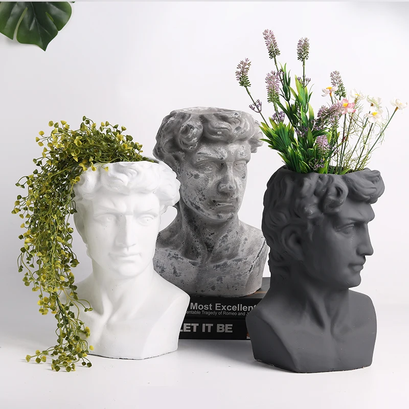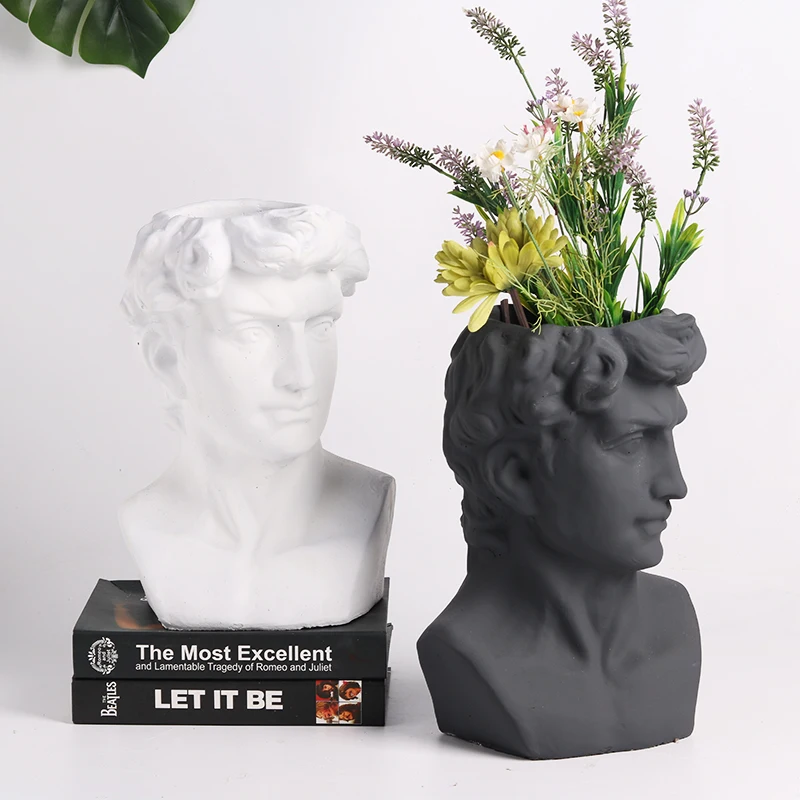 BEST QUALITY Garden David Head Statue Yard Balcony Vase Figurines Home Furnishing Decor European White Black Cha